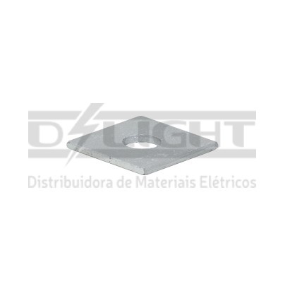 A arruela quadrada faz parte do sistema de fixação de todas as estruturas de redes aéreas, são essenciais para assegurar o aperto e torque perfeito ao longo do tempo, possui um furo de 18mm de diâmetro para ser utiliza em conjunto com parafuso máquina ou francês ambos M16.