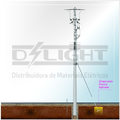 Chapa para Âncora, é utilizada para fixar a haste de âncora que faz o estaiamento de postes em final de linha ao solo. A Distribuidora de materiais elétricos D’Light tem um estoque amplo desta chapa.