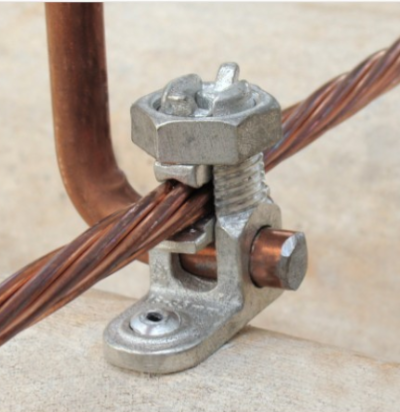 Finalidade: Conexão com cabos CS – COPPERSTEEL ou cobre. Utilizado para conectar um ou dois cabos à malha de captação com a telha metálica. Aterrar um ou dois cabos à estruturas de aço, caixas metálicas, chapas ou barramentos. Fixação de cabos de descida SPDA à alvenaria ou concreto.