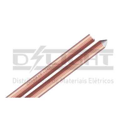 Material: Núcleo em aço-carbono (SAE 1010/1020) com revestimento de cobre eletrolítico de pureza mínima de 99,9% sem traços de zinco.